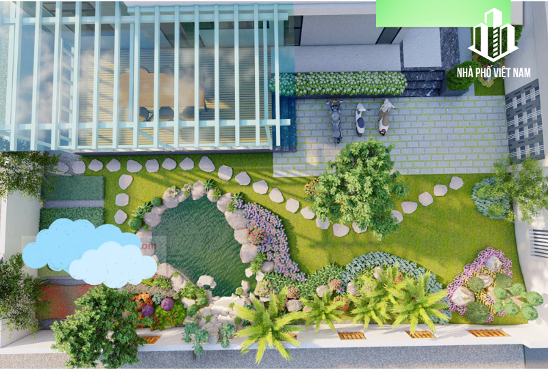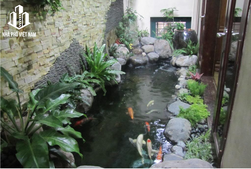 Sử dụng cây cối xung quanh mặt nước để tạo ra một không gian sống tự nhiên và hài hòa. Cây lá rậm rạp có thể tạo ra bóng mát và làm giảm ánh nắng mặt trời chiếu vào mặt nước.
