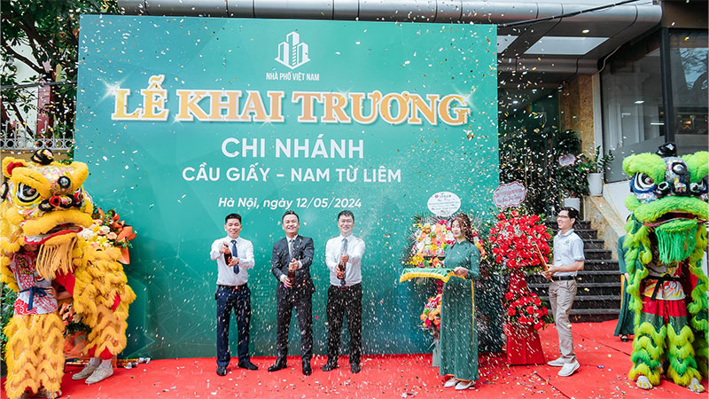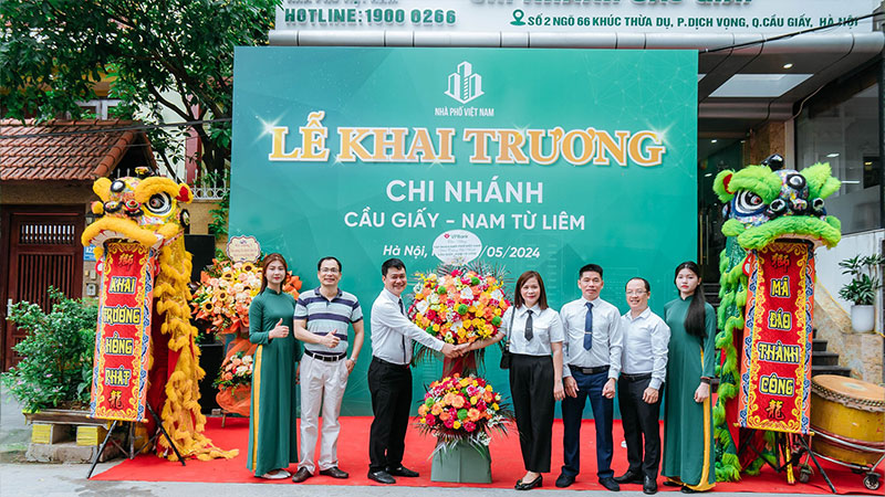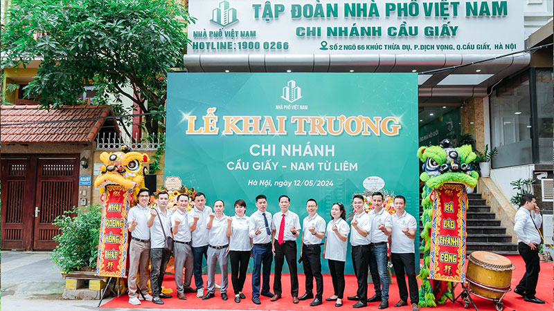 Ngày 12/5, Tập Đoàn Nhà Phố Việt Nam tưng bừng khai trương chi nhánh Cầu Giấy - Nam Từ Liêm tại địa chỉ số 2 ngõ 66 Khúc Thừa Dụ, Cầu Giấy, Hà Nội. Sự kiện là cột mốc quan trọng đánh dấu hành trình chinh phục bất động sản Hà Nội đã thành công rực rỡ. Đây chính là nền tảng vững chắc để Nhà Phố Việt Nam bứt phá hơn nữa, tiến tới chinh phục bất động sản miền Nam trong tháng 6 tới.